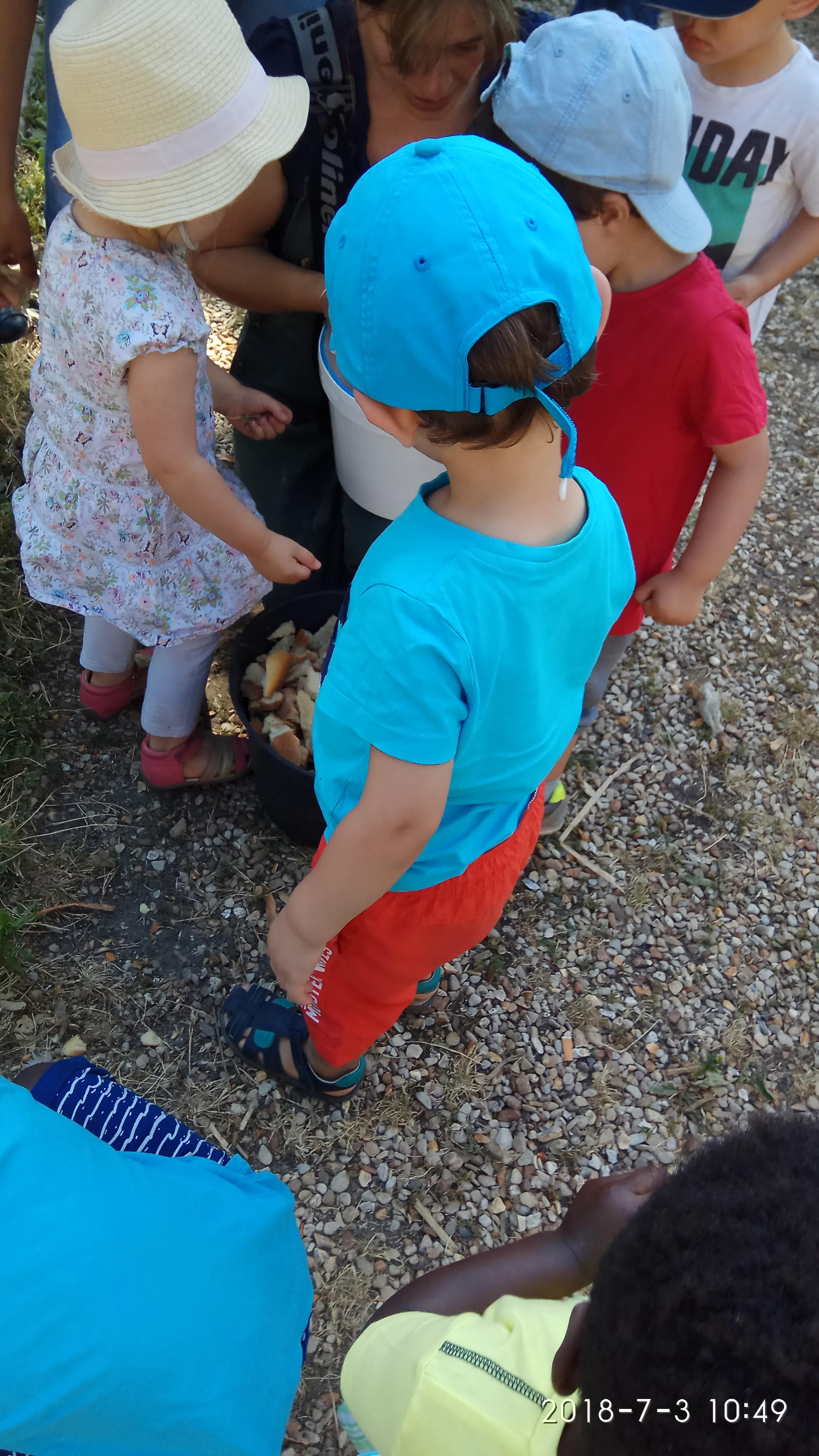 Excellente matinée d'animation avec les enfants de la crèche collective de Massy Vilmorin. L'animation était exceptionnelle et très adaptée aux enfants de crèche : briefing + pause pipi + remplissage marre aux oies +préparation nourriture aux oies + spectacle des oies et canards qui mangent + carresses lapins + moutons + sortie du cochon qui a mangé un œuf de femelle dobfons + carresses poussin puis pique nique dehors :-)))